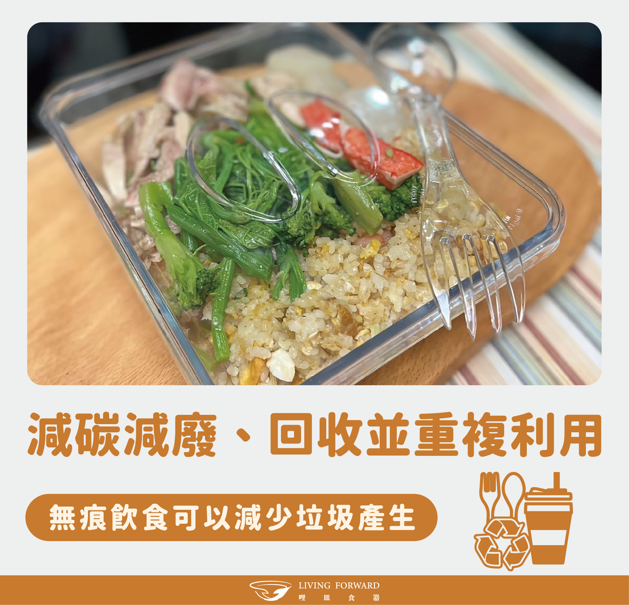 1.餐具無痕 現代人常見的「外帶包裝」都是一次性塑膠或紙盒,因為「它們」價格便宜、外帶方便。長期累積大量垃圾,地球已經不堪負荷。2020年台灣已經開始限制一次性塑膠政策,從免洗吸管、免洗餐具、飲料杯等,都是台灣逐步的改變,讓「重複使用」的觀念來減少對一次性的依賴。