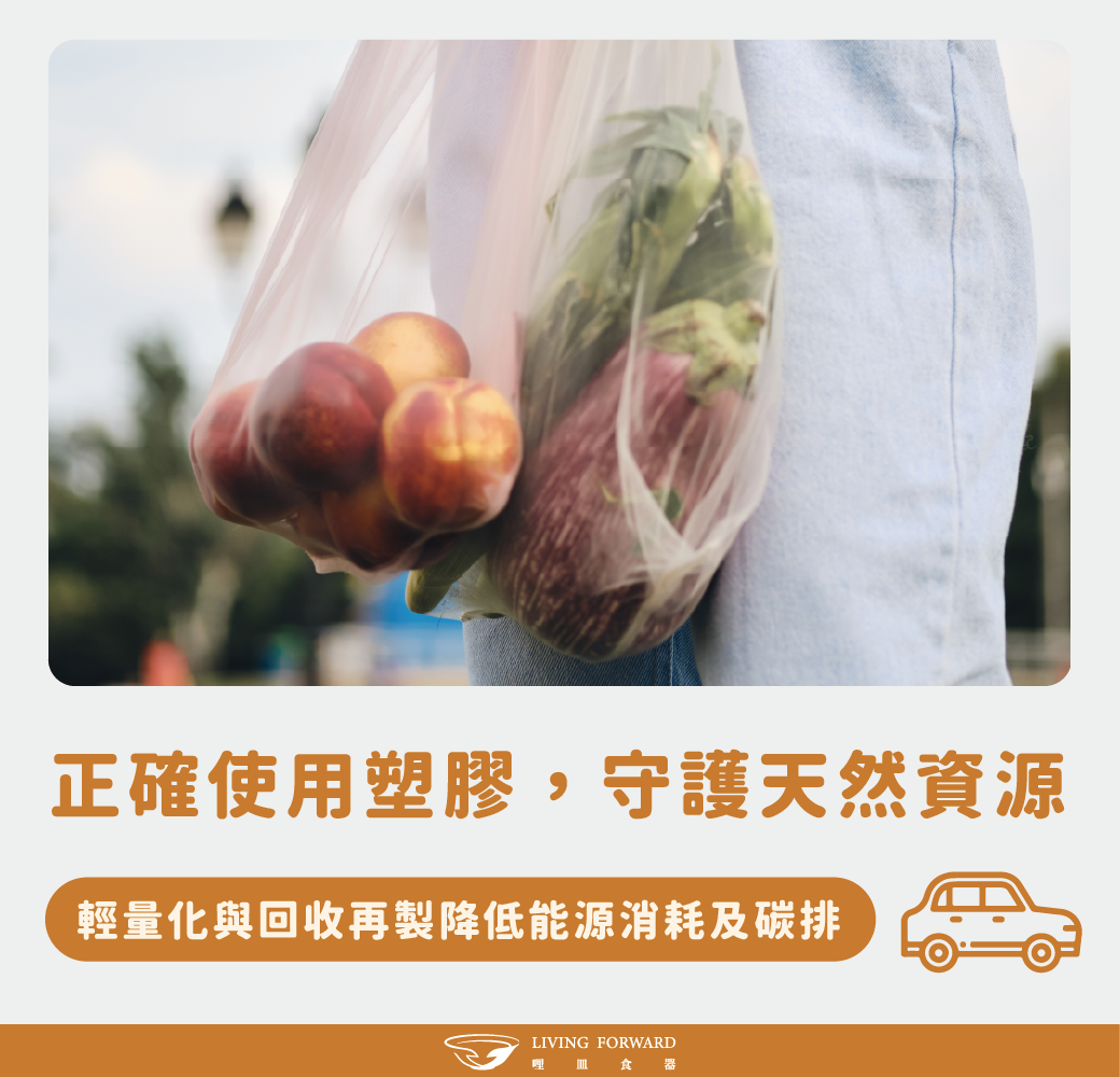 塑膠可被回收再利用,減少資源浪費。 經過適當回收和處理,重新再製,就能延續價值。 塑膠的輕量化特性,有助於降低運輸的耗能。