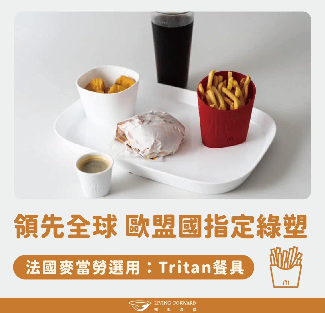 安全無毒、質感滿分,同材質餐具在哩皿也買得到! 歐盟的環保意識和標準始終領先全球, 而身為歐盟核心的法國#麥當勞所選用的循環餐具, 是美國FDA食品級綠塑材 Tritan(改質PCT), 不只時尚更兼具質感,打造全新速食店用餐體驗。 哩皿食器推出【全台第一家 Tritan材質餐具系列】, 成分百分百,不添加色粉, 從日常湯碗到外出餐盒,100%台灣製造的綠塑工藝, 不論在家或外出,邀您與歐盟一同落實減塑與環保, 擁抱綠色永續時尚。 |